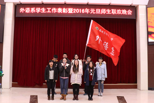 12月28日晚,“外语系2015年学生表彰暨师生联欢会”在北校区李秀厅隆重举行。系党委书记李安民、副主任田志强、党委副书记滕艳萍及全系240余名师生现场参与了本次活动。