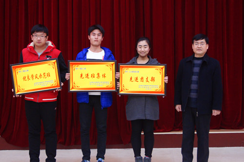 晚会伊始,一段充满温情的新年祝福视频,表达了系领导、教师及学生家长对全系师生的美好祝愿。在首先进行的学生表彰大会中,系党委副书记滕艳萍宣读了《关于表彰2014-2015年度系级学生先进集体和先进个人的决定》。一年来,全系学生团结奋进,锐意进取,涌现出了一大批先进集体和先进个人:英语143班荣获系优良学风示范班、英语141班荣获系先进班级体、英语143班团支部荣获系先进团支部,高雯迪等4名学生荣获党课优秀学员,胡雅嵘等6名学生荣获系优秀团干,高倩等13名学生荣获系优秀团员,秦丹丹等13名学生荣获系优秀学生干部,吴君艳等25名学生荣获系三好学生,张胜楠、张洋荣获系优秀研究生干部,吴芸、乔彩霞荣获系优秀研究生。随后,系领导分别为获奖班级和学生颁奖,受到表彰的同学也纷纷表示将珍惜所获荣誉,在新的一年继续努力,力争再创佳绩。