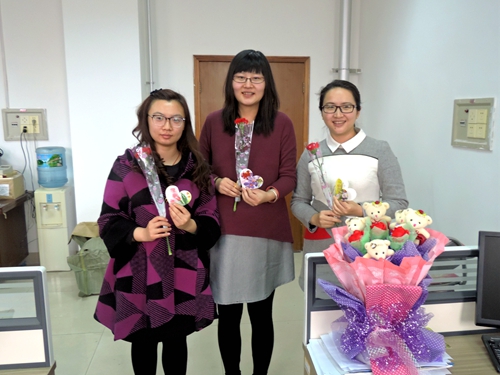 3月8日下午,学生代表来到了水科所综合楼的办公室,为还在认真工作的女教师们送上了精心准备的花束,并送上了节日的祝福。老师们被惊喜围绕,脸上满是喜悦的笑容,当看到同学们悉心准备的写满了节日祝福的卡片之后,这种惊喜更加明显,整个办公室都环绕着花朵的香气,洋溢着幸福的感觉。