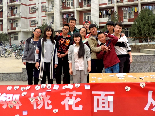 3月7日中午,水建学院学生会组织部在北校区西区雕塑前举办了“不忘初心,遇见你的她 ”迎接妇女节活动。活动开始前,志愿者们精心地布置了活动场地。“铭记此生,你们是最美的风景”的背景横幅高高挂起,桌前横幅上文艺诗意的“幸得识卿桃花面,从此阡陌多暖春”道出了所有水建男生在女生节这天对女生的深切告白,简单明快又热性浪漫的音乐也在耳边响起。