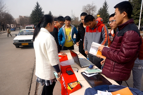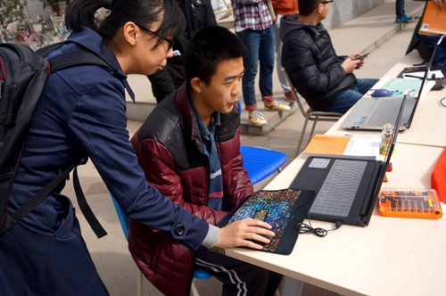 计算机义务服务队的队员们在西超小红人前举办“学雷锋”电脑定点维修活动。希望给同学们普及更多计算机知识,为更多的人解决各种计算机问题,并让越来越多的人科学地使用电脑。活动中,不断有同学把电脑送来,杀毒、装软件、重装系统——队员们有条不紊的帮同学们维修着,受到了同学们的一致好评。