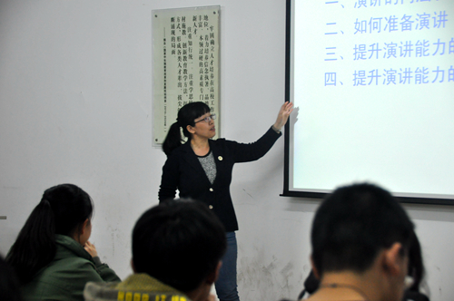 李娜老师从同学们关注的“课前三分钟”为出发点,深入了解同学们的需求,进而通过引用名言警句、励志故事,引出了本次授课的主题“演讲与口才,成就美好未来”。李老师从演讲的内涵、特征、分类,如何准备演讲,提升演讲技能的方法技巧,如何在实践中提升能力四个方面,深入浅出的讲述了拥有好口才对人生的重要性。李老师语言富有感染力又极具条理,台下气氛非常热烈,精彩处同学们纷纷报以热烈掌声。生技1504班何晨表示:“听了李老师的报告,我收获特别多,我会克服不自信的缺点,勤加练习,让自己的演讲水平提到更高的水平。”