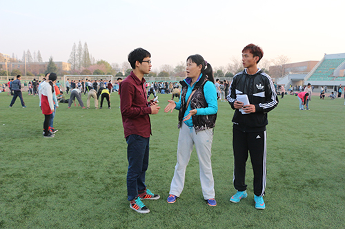 体育辅导员赵文红与学生干部交流