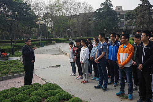 北校区图书馆前,一代育种专家赵洪璋教授的塑像静静矗立着,4月2日上午,值清明节前际,农学院党委书记惠安堂带领农学院学生来到先人塑像前,肃立、鞠躬、敬献鲜花,向赵洪璋教授表达致敬与哀思。