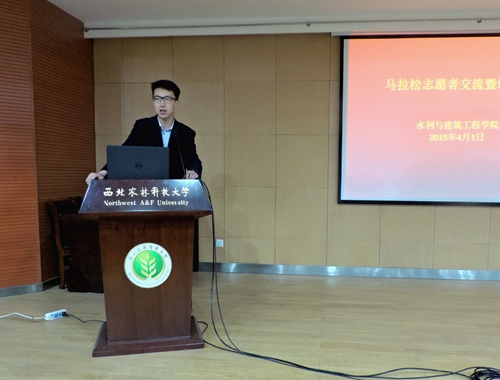 交流会伊始,孟老师对同学们的志愿者行为进行了鼓励,并提出了自己的要求,他表示,本次志愿者代表的是西农,展现的是水建学院的风采,因此在服务的过程中一定要注意自己的言谈举止,争取以自己的行动为校争光。随后,院社践部副部长周海旭通过讲解PPT向志愿者讲解了关于杨凌国际马拉松的具体情况,包括了马拉松比赛的特点、有关规定、对志愿者基本要求、各工作岗位职责及任务以及比赛过程中应注意的问题进行了详细介绍。我院优秀志愿者代表、马拉松比赛的组织人员李博同学就志愿者手册上提到的急救、秩序等问题给志愿者做了详细的介绍。之后祝鹏同学、王云舟同学上台和志愿者们交流了他们作为志愿者的经历,给出了宝贵的建议,其中祝鹏同学这样说道:“志愿服务是一种奉献,是以不同的角色参与到活动中来,通过参与增长见识,增强能力。”王云舟同学也鼓励志愿者们珍惜机会,做好自己的工作。