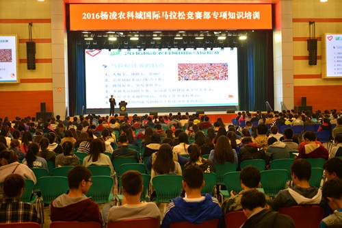 为进一步做好2016年杨凌国际马拉松赛志愿者工作,确保赛事圆满举办。4月5日晚,我校在北绣山活动中心举行2016杨凌农科城国际马拉松竞赛部专项知识培训。此次培训由刘志强裁判员主讲,竞赛部全体志愿者及裁判员到场参加培训。
