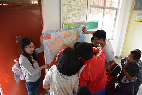 志愿者为同学们讲解地图‘