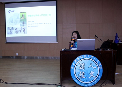 4月21日晚,“人文讲坛”第二十七期在北绣山北报告厅举行。人文社会发展学院刘娟老师以“中国农村留守人口研究十年”为题,分享了其求学经历、所参与的中国农村留守人口研究历程以及近期关于乡村留守中的性别排斥与不平等的一些研究结论。来自各院系一百多名师生聆听了报告。