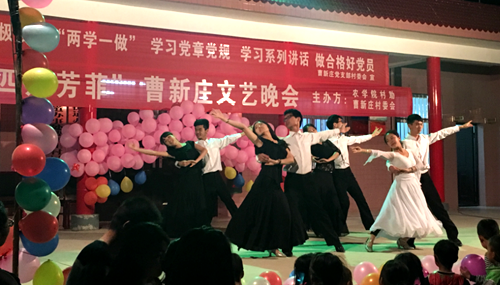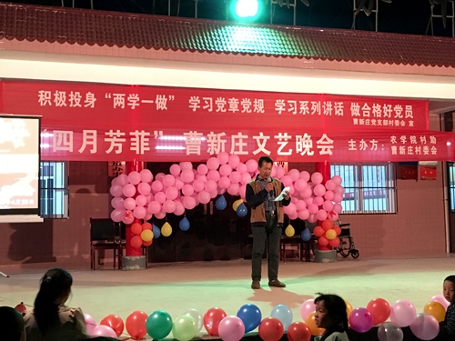 4月23日晚8点整,在曹新庄村服务中心前的台子上,由农学院村助和曹新庄村委会主办的“四月芳菲”曹新庄文艺晚会正式拉开了帷幕。曹新庄村委会书记杨战利,副主任李权利以及农学院团工委书记杨华出席本次晚会。