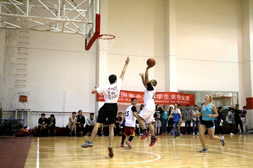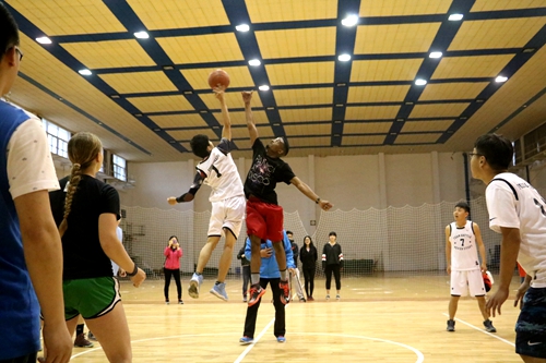 为培养我院学生国际化的视野,加强与国际学生的交流,增进双方的友谊,5月13日下午四点半,我院与来自美国内布拉斯加林肯大学和美国奥本大学留学生在北校篮球馆进行了一场篮球友谊赛。双方均派出实力强劲的男女篮球队员。比赛友谊第一、比赛第二,形式灵活,男女队员随机搭配上场。