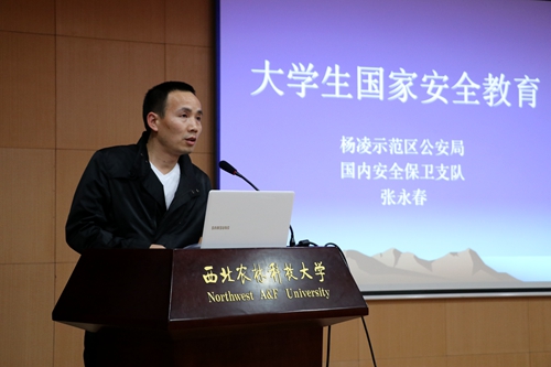 为了突出大学生安全教育的紧迫性与必要性,5月17日风景园林艺术学院特邀杨凌区国家安全保卫支队的支队长张永春警官,在北绣山北报告厅开展了主题为“平安西农,于细于微”的专题讲座。我校政保军事科科长温铁民,园林学院团工委书记以及大一大二学生参加了讲座。
