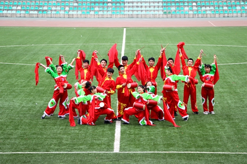 为贯彻团中央“三走”精神,提高大学生体能素质,丰富文化生活。5月22日,第十七届校园文化艺术节腰鼓大赛决赛在我校北校区田径场举办,共有来自十三个学院的队伍参加,由校团委副书记李春祖,示范区黄土情腰鼓协会会长常锦勤,示范区信天游腰鼓队教练白长安,体育部教师王艳,团委文体部部长杨彦宝担任评委。