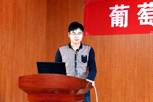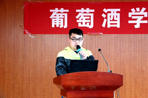毕业生沙青的实习地点是德国的克林根堡酒庄,首先,他向大家介绍了克林根堡酒庄的地理位置和附近的优美景色,生动详实的PPT向我们再现了那里的风土人情。国外的生活也不是像大家想的那么优越,几十平米的房屋,狭窄的厨房,简单的饭菜,寒冷的天气,不过,最重要的是,一次实习让他对国外的酒庄和相关工作者有了更多的了解。添桶、打循环、垦地、加硫等工作均已亲身体验,有时也可能一整天都在重复的开瓶塞。“酒窖管理”方面的主要学习也使他对国外酒庄的工作机制和方式有了更多的了解。