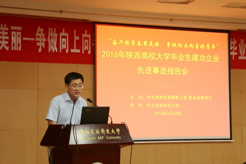 为充分展示我省高校大学毕业生扎根基层、创新创业、报效祖国、服务人民的先进典型,进一步引导我校青年学生学习先进、崇尚先进,毕业后到基层一线和艰苦地区磨练自己,5月24日,由中共陕西省委高教工委、陕西省教育厅主办,我校承办的“奋斗的青春最美丽”――争做向上向善好青年先进事迹分享报告会在北绣山活动中心北报告厅举行。出席此次活动的领导和嘉宾有团委副书记李春祖,团委社会实践部部长刘业兴,先进事迹报告团成员张龙、陈才泽、田小雄、李伟、陈汝刚,近百名学生聆听了这场报告会。