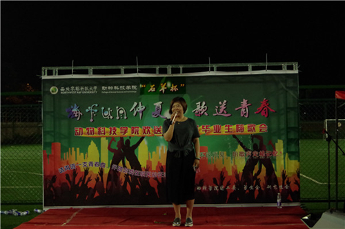 6月20日晚,动科学院在北校区五人制足球场隆重举行2016届毕业生“石羊杯”嗨歌会。动科学院党委书记赵延安、党委副书记王晓娟、全体专兼职辅导员,以及学院2016届毕业生欢聚一堂,在这个难忘的雨夜,共同品味这场属于动科毕业生的青春盛宴。