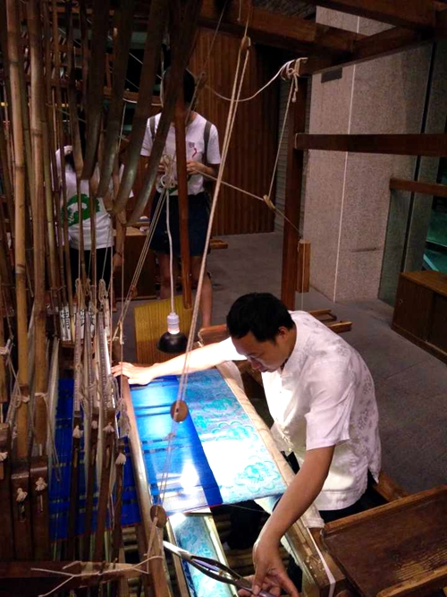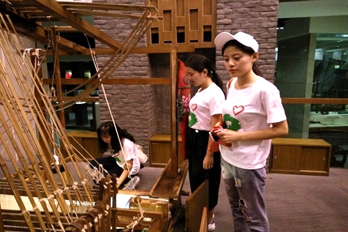 为帮助队员们更加深入的体会到中华传统文化独特而精致的魅力所在,让大家近距离接触感受蜀锦的特色。活动当日,恰逢蜀绣大师现场织布,队员们有幸得以亲眼目睹清代花楼木织机现场手工织锦,只见大师的双手灵活而娴熟的穿梭于织布机上,而他制作的蜀锦布局结构错落有致,穿插得当、用色丰富,对比和谐,画面极富韵律感极好的向大家再现了古代蜀锦手工织造的壮观场景。通过观赏蜀绣大师现场织布,队员们内心受到了极大触动,深刻感悟到了中华传统文化的魅力所在。