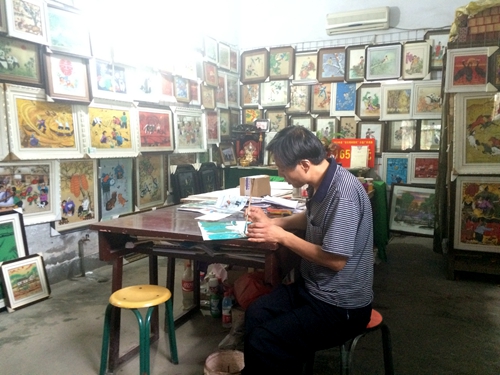 另外,潘老师认为农民画的产业化是一把双刃剑。农民画是通过产业化而发展出去,走到国外,走向全世界,这对农民画的发展起了很大的推动作用。但是,大家一拥而上进入市场,争相模仿当下所流行的作品,很多人会逐渐失去自己的作画特点;而且现在市场上没有一个好的管理机制,一些盗版的事件时有发生,这对画家造成了许多不利的影响。