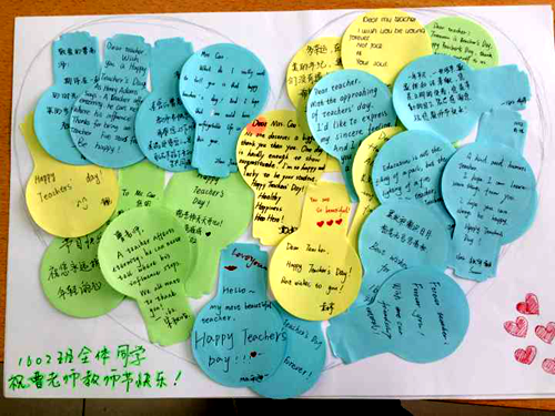 我们将对您的祝福写在纸上,却道不尽我们对您的感激。一个一个小纸片组成的一颗大大的爱心的形状里藏着我们满满的小心情与期待。您的笑容安稳了我们每一颗有些小忐忑的心。师恩难忘,将宝贵的人生经验馈赠;师情冗长,为我们指引幸福的前程;师爱无疆,震撼着心灵最柔软的地方。