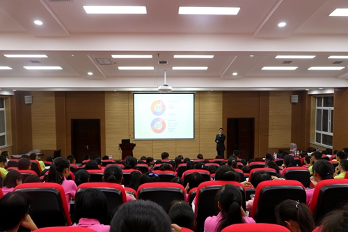 党委副书记唐海波,结合学生的成长需求,从生活方式的调整、学习方法的变通、高中生活与大学生活的切换,给全体新生提出了多条切实有效的建议。从每日读书花费的成本计算到每天晨读半小时对大学四年的学习生活乃至一生发展的重要影响;从结合自身经历帮助舍友养成良好的生活习惯到携手学生家长帮助学生成长成才,唐老师讲解的每一个事例都能够让学生在轻松诙谐的环境中体会到大学要认真学,生活要认真过,用心学习,用心做人,我们要时刻落实。