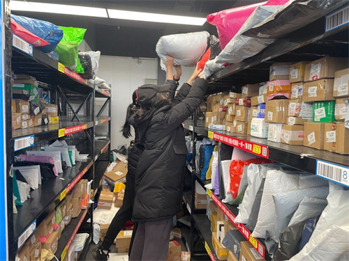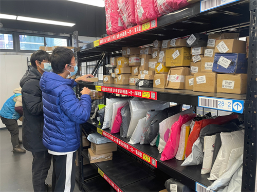 志愿者们首先抵达了北校区菜鸟驿站,并全员配戴口罩。在驿站工作人员的带领下,志愿者快速熟悉了工作内容。志愿者们主要完成卸货、货物上架、疫情防控三方面的工作,旨在帮助驿站工作人员减轻负担,方便师生拿取货物。