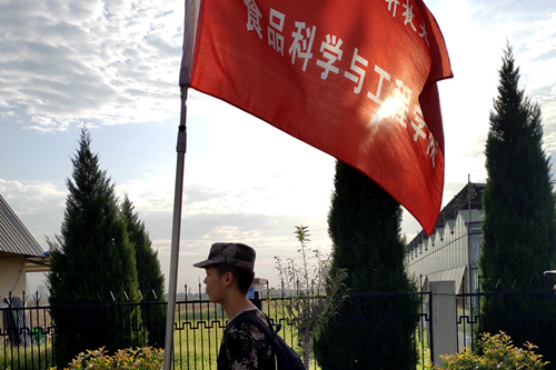 昨天,食品学子刚刚庆祝完抗日战争胜利73周年纪念日;今天上午又接到上级模拟演练指示:有敌军正从西安方向进发,准备攻占西北农林科技大学北校区。随后首长迅速做出批示:所有人全部撤离北校区,采取迂回战术,封锁围剿侵略军队。接到批示后,食品学子不敢怠慢,神经高度紧绷,二十四连的副连长孟令奎坚定的说道:“养兵千日,用兵一时,我们已经熟练的掌握了军队技能,现在正是一展身手的时候,我们无所畏惧,定将敌人杀破胆!”听到孟副连长如此激昂的讲话,三个连队不禁军心大振,即使前方没有凶恶的敌军,但透过每一个深邃的瞳孔仿佛都能看到他们视死如归的决心。首长看到新生学子们坚定刚毅的眼神后赞叹到:“经过时长八天的军训生活,你们已经磨练出了硬朗的心智,过人的胆量,成为了一支支不可小觑的力量,可以说你们现在都是合格的预备役军官!”经过首长短暂的训话后,食品骄子们以更加饱满的热情踏上拉练征程。