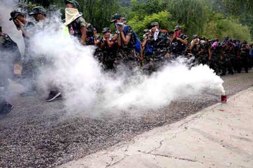 行进途中,食品三连队不时唱响军歌,振奋军心,同时又保持着队列的整齐,不随意践踏庄稼,展示出超高的纪律意识和素质教养,积极维护中国军人的光辉形象。途中,既有陡峭的坡路,又有深邃的峡谷,更有激湍的河流,食品二十四连的宁布慨叹道:“面对如此艰险地形,可能当年日本鬼子真的看不到我军的埋伏,挖掘利用所有条件来取得战斗优势,不得不佩服中国军人的战斗智慧。”接下来,依次经过敌军布置的污染区、炮火封锁区,在首长的严密指挥下,同学们时而疾走,时而卧倒,时而匍匐前行,展示出超高的战斗素养和在军事打击中生存的能力。诚然,听党指挥,能打胜仗。新时代下的食品学子必将高举党的旗帜,牢记长征精神,心有明灯,不畏艰苦,踏上中华民族伟大复兴的长征之路。