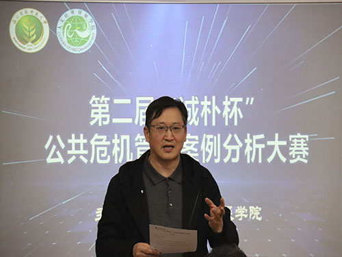 最后,经管学院的刘超副教授对本次公共危机管理案例分析大赛决赛作品进行点评。他首先肯定了同学们在本次大赛中的出色表现,各队交叉学院进行组队,体现出公共危机管理的多领域交叉特征;各队对于近年来国内外特别重大的公共危机事件进行深刻的理论分析,呈现出新一代农林人强烈的危机意识和较高的危机管理思维能力。同时,他鼓励同学们再接再厉,密切关注现实,理论联系实际,在今后的管理案例研究中保持热情。