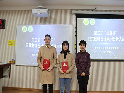 大赛前期共有来自各学院137支队伍593人报名参加,最后提交作品113份。本次大赛竞争激烈,经过评委们多轮选拔,最后有15支队伍进入决赛。决赛中,各团队答辩人对我国近年来发生的特别重大的洪涝灾害、土壤污染、化工厂爆炸、马拉松事故等公共危机事件进行深入分析。评委们根据分析报告、现场表现等指标,对各参赛小组进行公平、公正地评判。最终,来自林学院的“人类幼崽队”和人文学院的“智勇双全队”获得一等奖,“安柯队”等五支队伍获得二等奖,“树新风队”等八支队伍获得三等奖。