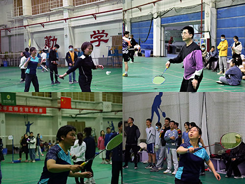 本次比赛设男女单打、男女双打、男女混合双打五种赛项,以小组赛、半决赛、决赛的方式进行比赛。赛前,工作人员做好赛前安排,各参赛选手进行热身准备,各赛项裁判一一就位。比赛中,选手们眼神坚定,起跳、挥拍迅速精准,尽显不断进取的精神风貌,队员们紧密配合,默契十足,进攻防守一气呵成。裁判们公平公正,恪尽职守,尽显严谨细心的负责态度。老师们神采奕奕,精神充沛,尽显积极向上的生活态度。羽毛球带着选手们的汗水和自信在空中划出一道道弧线,展现着努力、奋发、进取的体育精神。在激情四射的赛场外,观众们的欢呼、喝彩声以及啦啦队的加油声不绝于耳,紧张而激烈的比赛将场上、场下的气氛带动起来,不仅为观众带来一场视觉盛宴,还使师生间的情谊更加紧密。