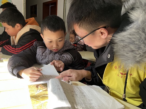 进入东苑社区,在社区工作人员对志愿者们进行简单的介绍之后,志愿者们便开始对小朋友们的作业辅导工作,志愿者们耐心讲解,利用自己的知识对小朋友们进行一对一的作业辅导和习题讲解,在志愿者们的辅助下,小朋友们完成了自己的家庭作业,解决了学习上的疑问。随后志愿者们为小朋友们介绍了中国传统节气之一—冬至日的背景知识和传统习俗,用趣味地理知识向同学们讲解了为何冬至日那天夜最长,日最短;通过志愿者们的介绍,小朋友们了解到在冬至这天人们会进行一些传统活动,趣味的冬至日宣传视频增进了小朋友们对冬至日更加深刻的认识与了解。这天阳光明媚,朗朗的读书声在教室环绕——“春雨惊春清谷天,夏满芒夏暑相连,秋处露秋寒霜降,冬雪雪冬小大寒……”温暖的阳光照射在志愿者和小朋友们的身上,他们灿烂的笑容犹如美丽的鲜花绽放。