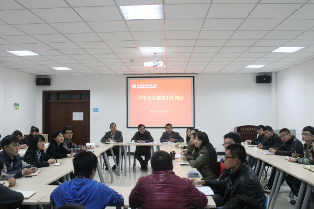 11月26日,我校学生会主席团十三周工作例会在北绣山活动中心206会议室举行。校党委副书记马建华,团委书记曹军会,团委副书记张永斌、徐海,校学生会主席团以及各学院学生会主席参加了此次例会。